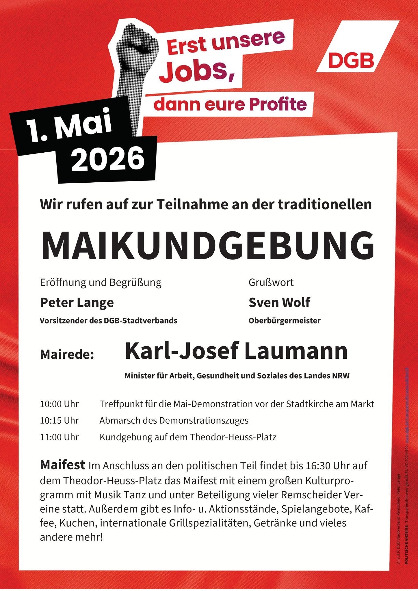 wir laden euch herzlich zu unserer 1. Mai Kundgebung in Remscheid auf dem Theodor-Heuss-Platz und in Solingen auf dem Neumarkt ein.