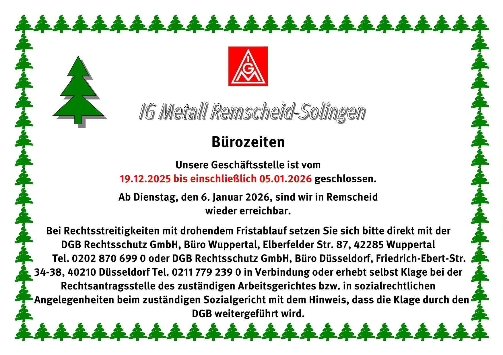 Ab Dienstag, den 6. Januar 2026, sind wir in Remscheid wieder erreichbar.