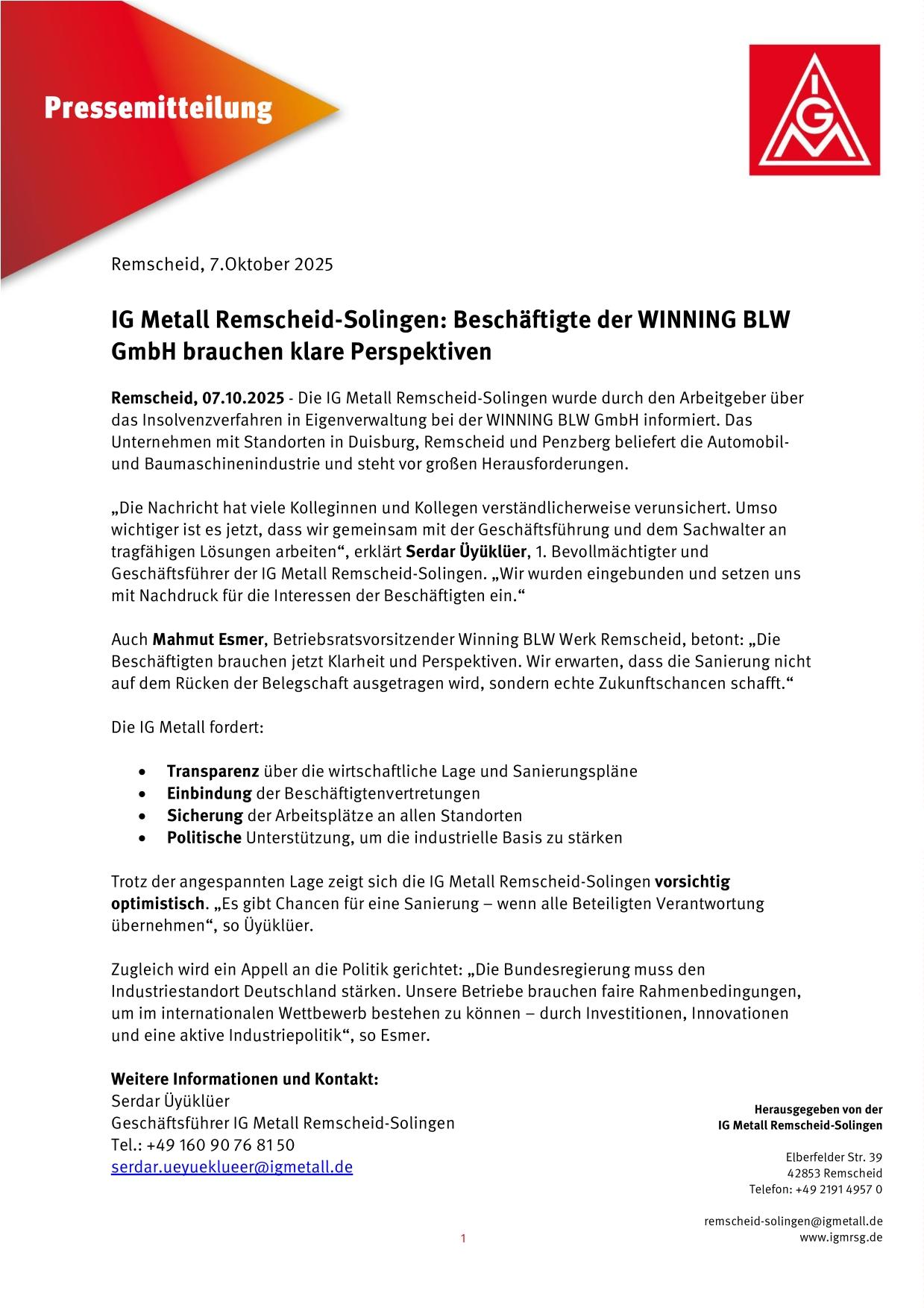 als IG Metall nehmen wir diese Situation sehr ernst und setzen uns auf allen Ebenen dafür ein, die Interessen der Beschäftigten zu schützen, Perspektiven zu schaffen und solidarische Lösungen zu entwickeln.